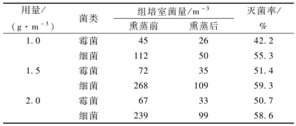 表1 艾叶不同用量熏蒸处理的灭菌效果