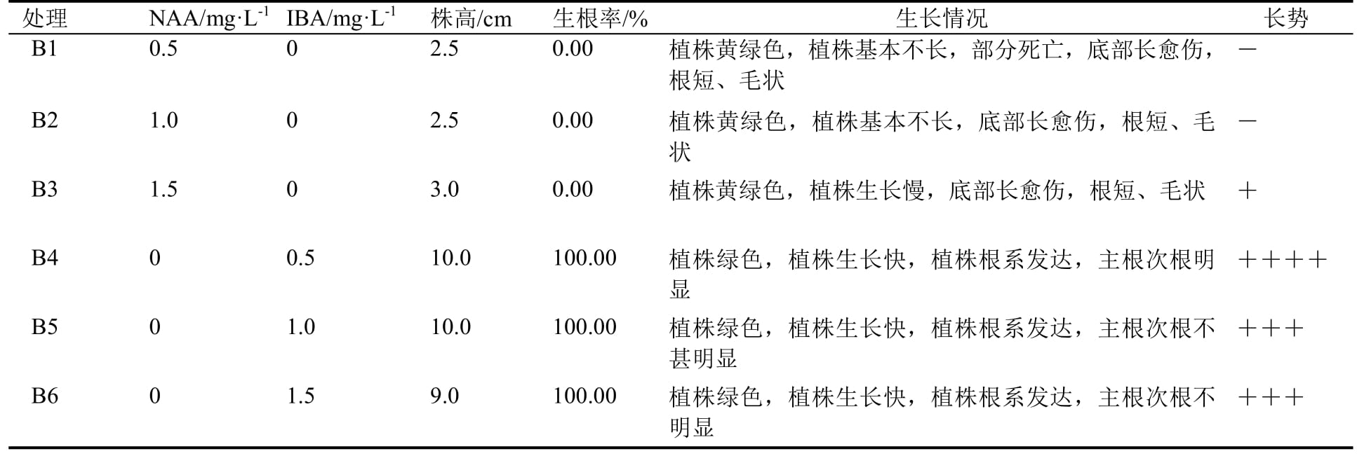 表4 不同浓度NAA与IBA对叶下珠丛生芽生根的影响