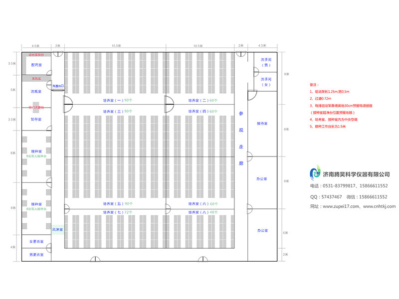 有相对独立的90 m2左右的实验室即可,水电暖设施齐全,采光条件好。至少分成3间使用,通过玻璃隔断分成单间:一间为准备间,用于玻璃器皿的清洗和贮存以及培养基的制备;第二间为操作间,这个房间必须严格消毒,用于实验操作,在清洗玻璃器皿和制备培养基时要分开进行,以免影响培养基的成分;第三间为炼苗室,用于无菌苗的培养,这一间的温度条件、光照条件较为严格。