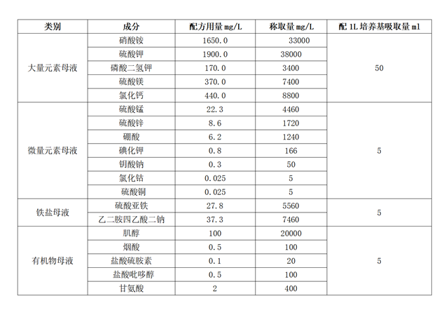 WPM基本培养基母液配制见表