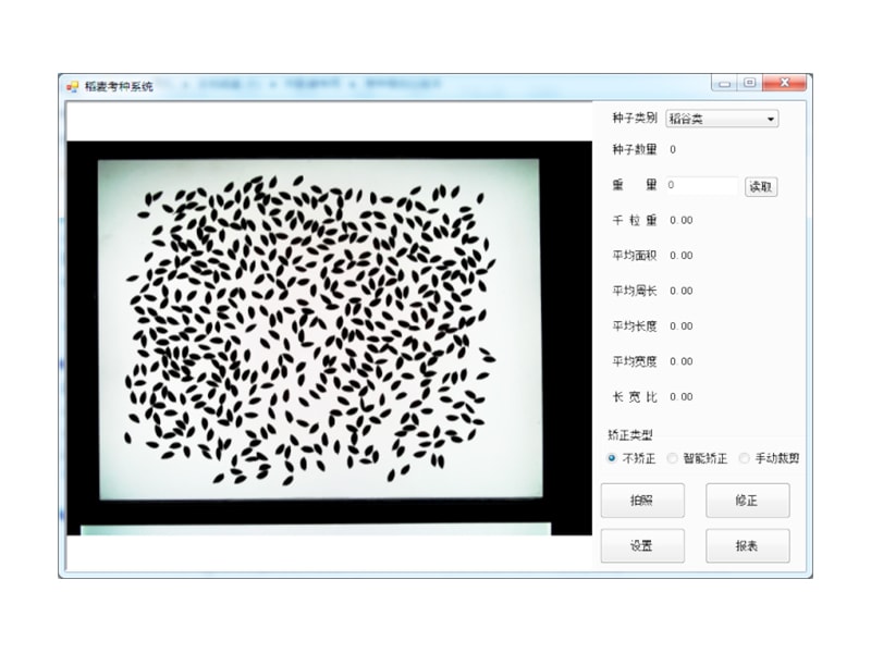 可以直接通过拍照实现种子数量计算,自动输入重量计算出千粒重以及平均面积、平均周长平均长、宽、长宽比,而且具有手动修正功能,确保数粒、重量精度更高。